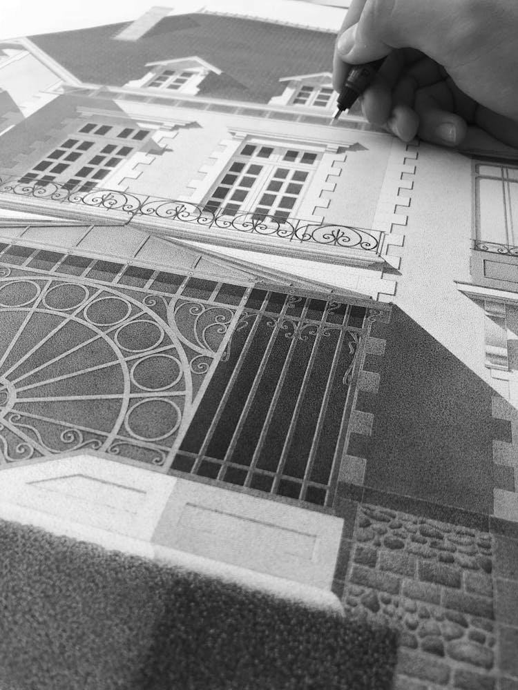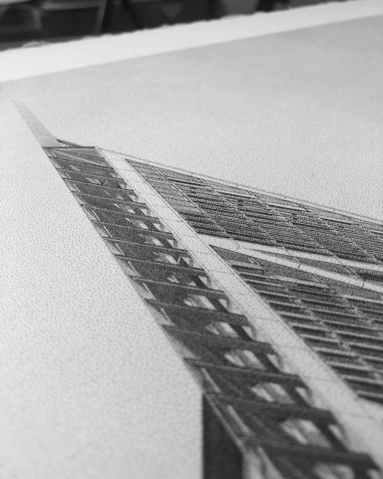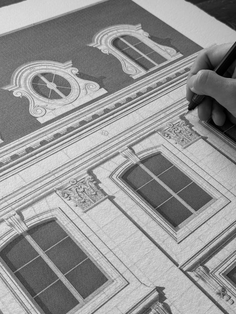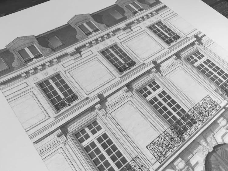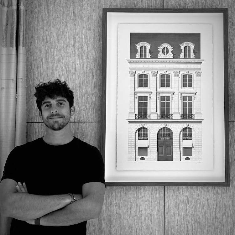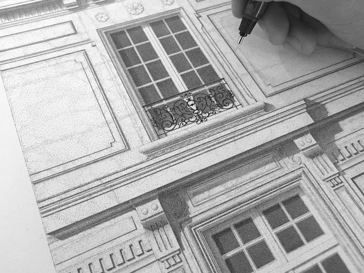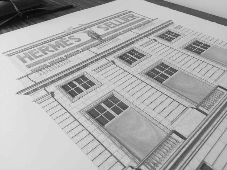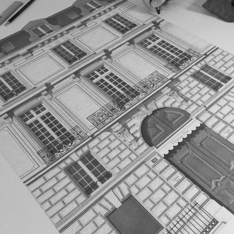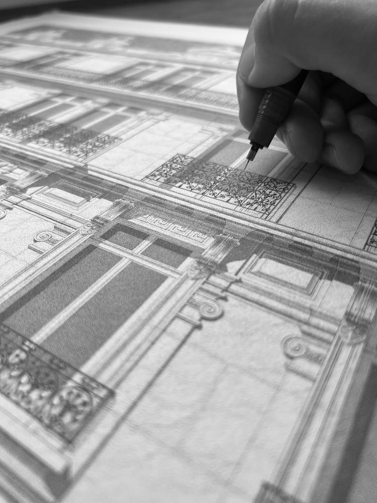 New project for Louis Vuitton: a large-scale stippled drawing of the iconic façade, now exhibited at Louis Vuitton, 2 Place Vendôme, Paris.