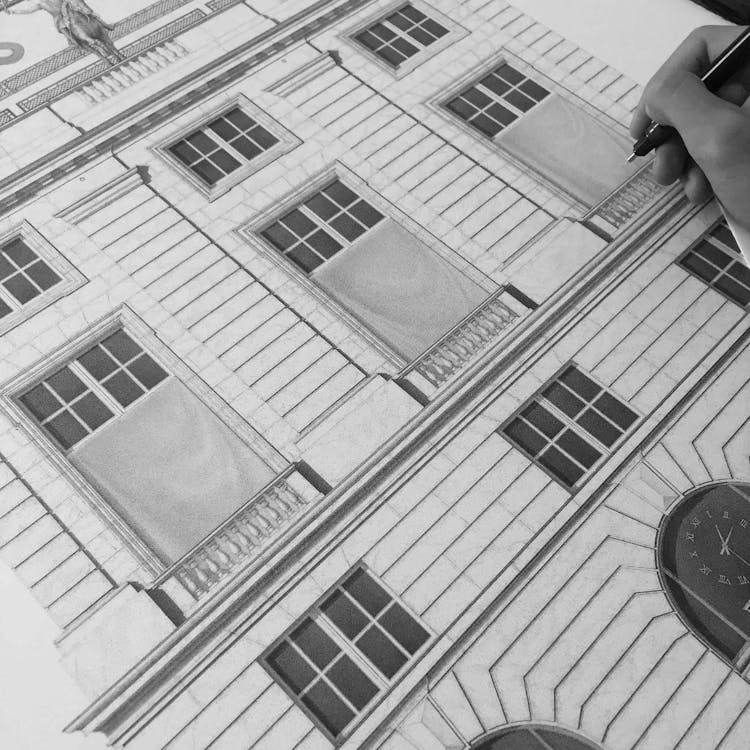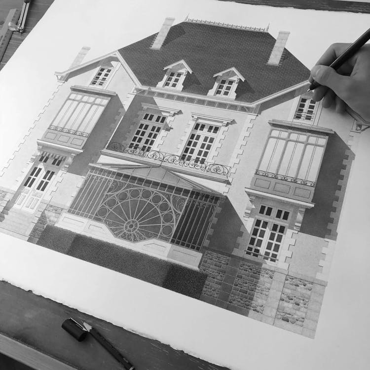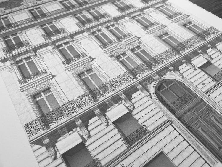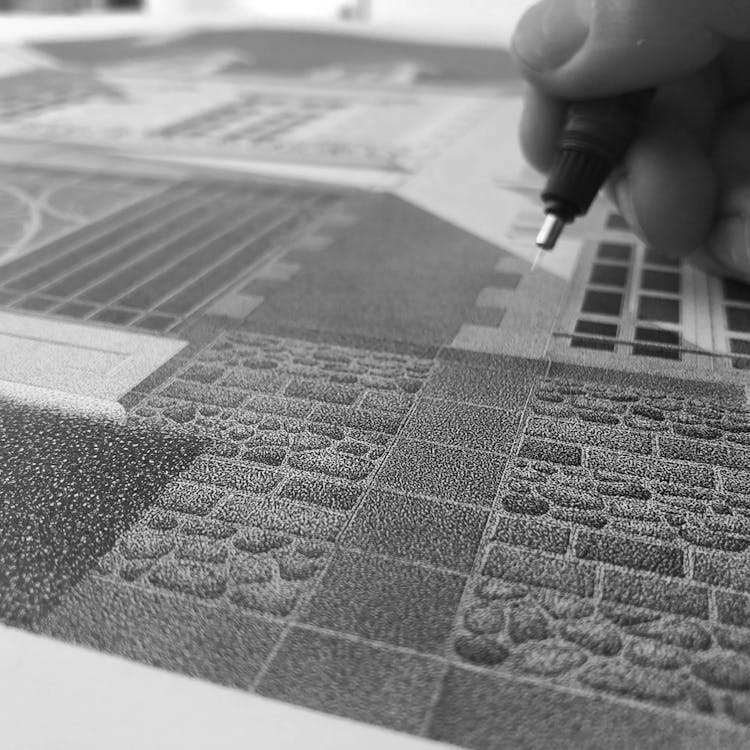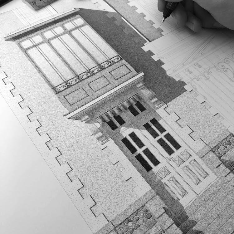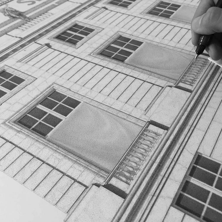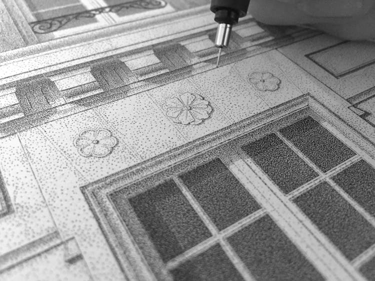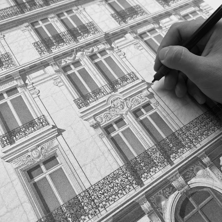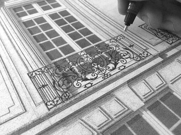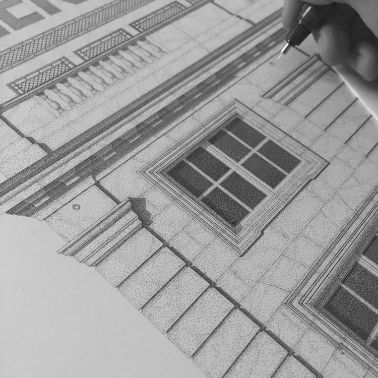 New project for Louis Vuitton: a large-scale stippled drawing of the iconic façade, now exhibited at Louis Vuitton, 2 Place Vendôme, Paris.