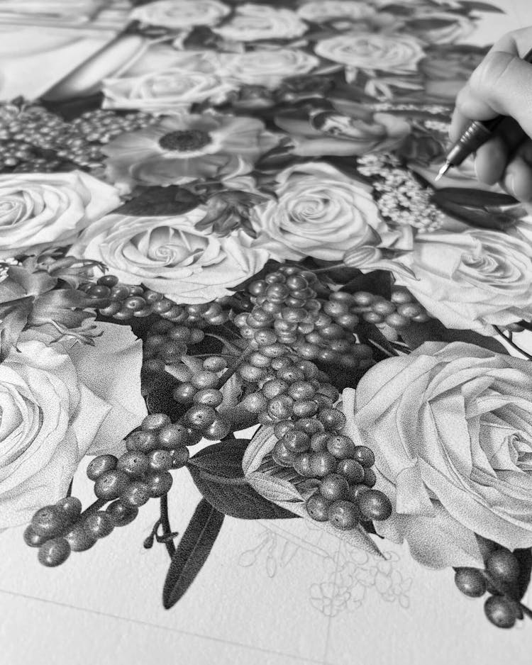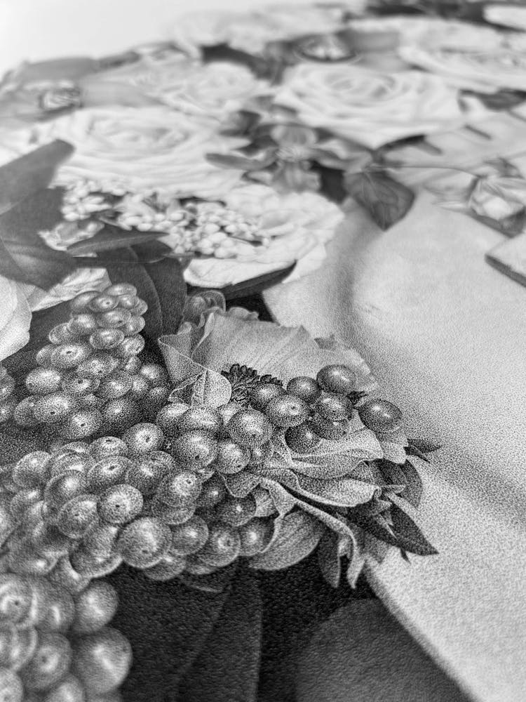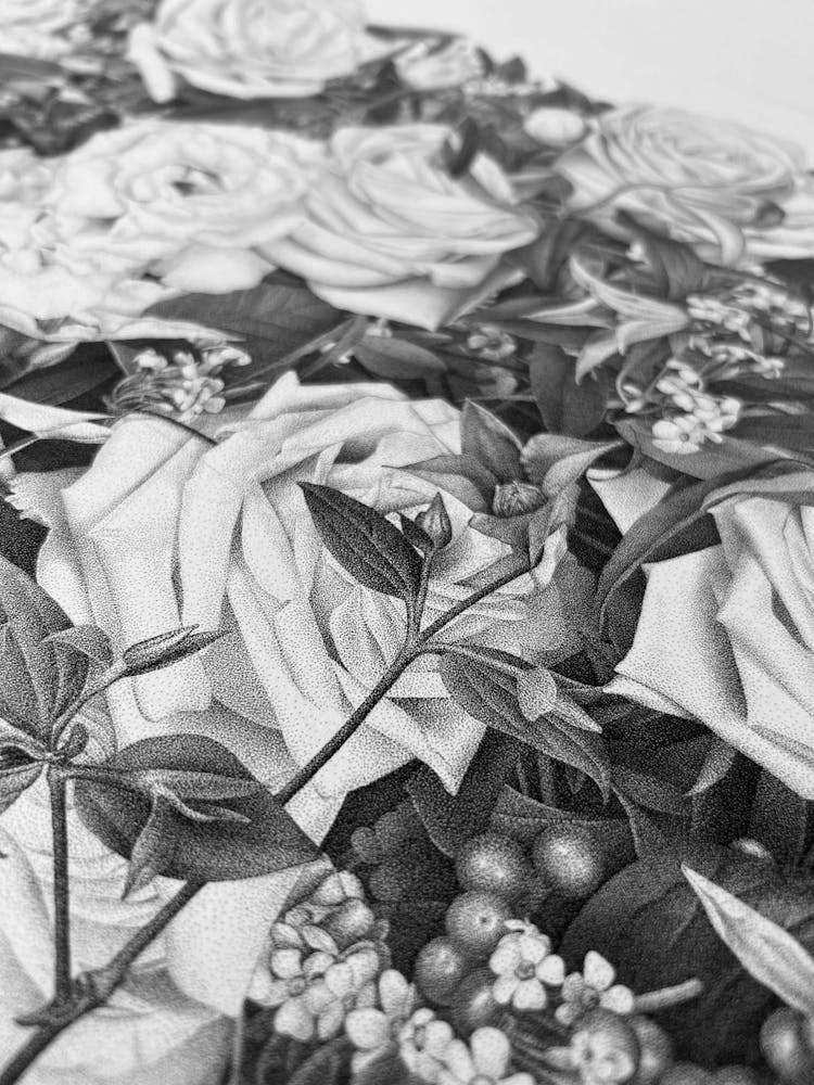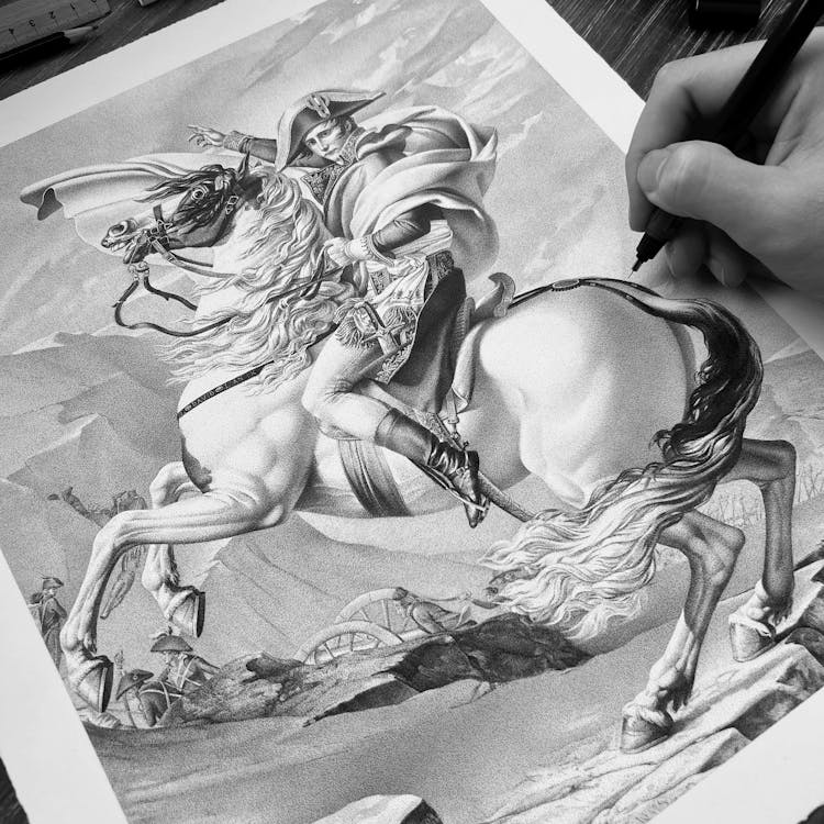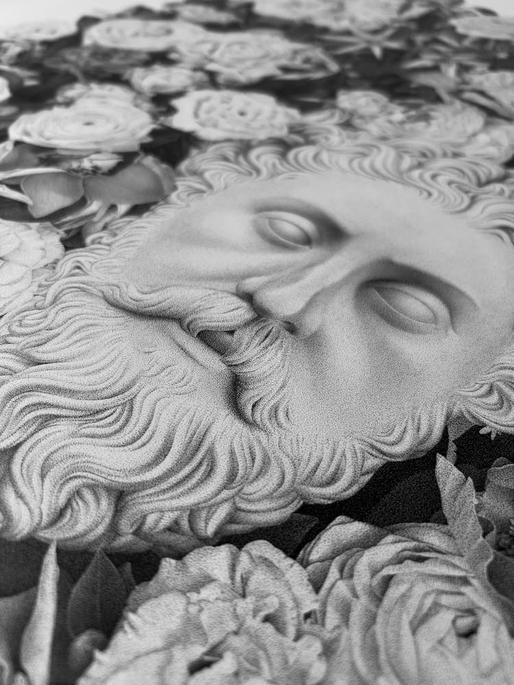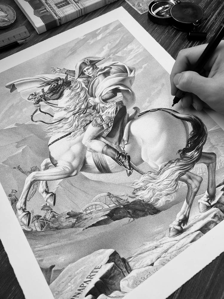 Xavier Casalta is a French artist internationally recognized for his masterful stippling technique. Using only black ink, he meticulously places millions of tiny dots over thousands of hours, creating artworks of exceptional depth and intricacy.