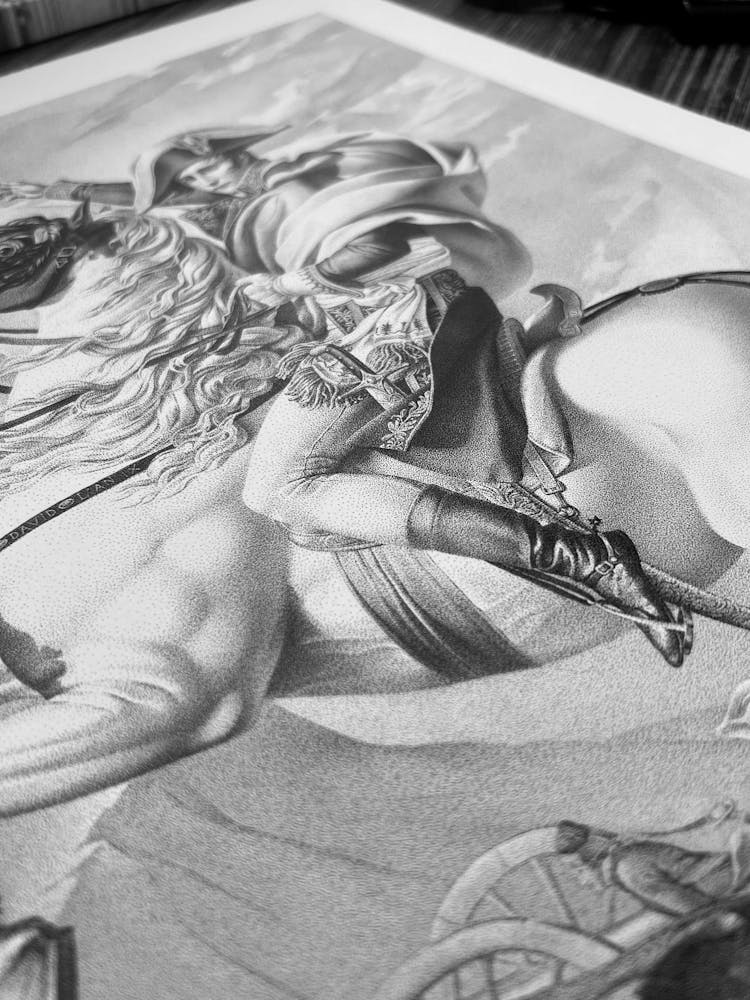 After 2,400 hours of inking, Xavier Casalta completes his largest piece to date. His Marcus Aurelius artwork enters a prestigious private collection in Hong Kong.